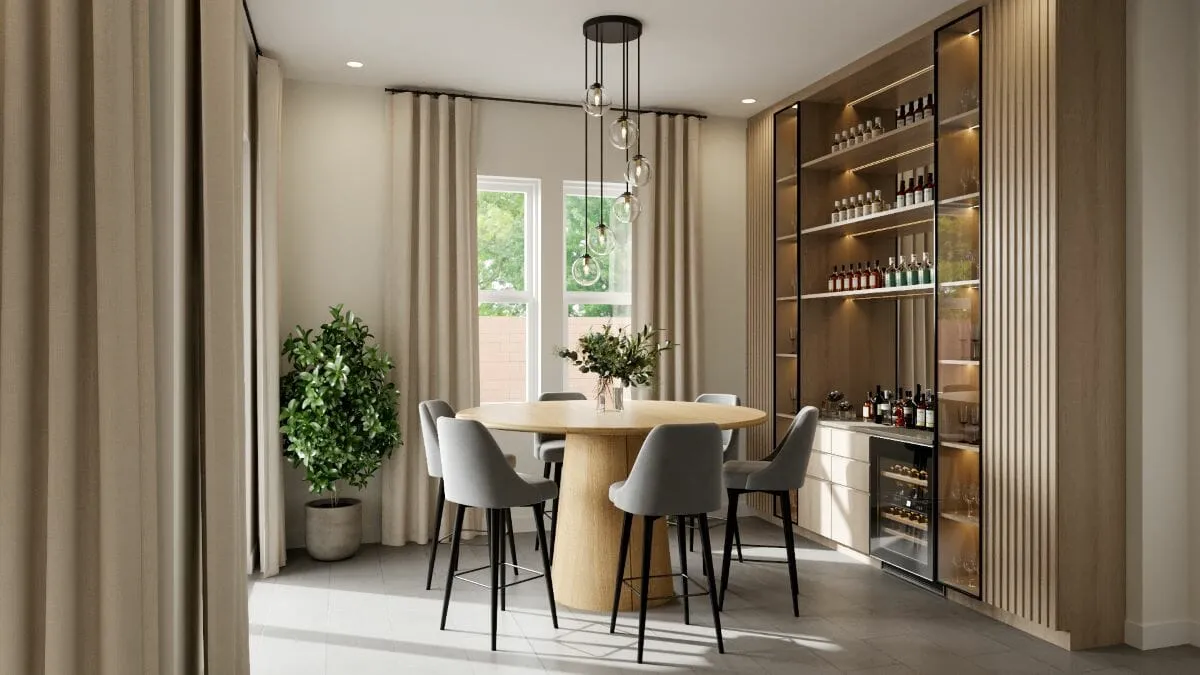 People often have a tendency to purchase dining room furniture and other products separately from the ready-made furniture shop. But with Inneninterior you have an option to get dining room furniture such as table, chairs and crockery shelves in matching designs and color. By custom design and making, dining room interior design can be in perfect combination with modular kitchen. Inneninterior provides you with a comfortable design that matches your requirements. A suitable bar counter can be designed conveniently within the space available or the wash counter can be augmented by adding storage in matching colour themes. Take a look at some of our products for your dining room in this page to customize and include in your home interiors package. We have an endless variety of dining room interior design decors to give your dining room the makeover it deserves with gorgeous and beautiful updates for walls, lighting, and exclusive furniture. This facility of custom design and implementation of dining rooms in combination with other rooms is available in our branches in Navi Mumbai, Pune, Hyderabad, Bangalore, Mysore, Kerala, Chennai, Nagercoil, Coimbatore, Madurai & Mangalore.
